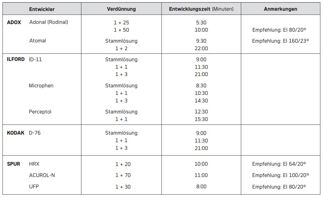 Le film APX 100 peut être développé avec la plupart des produits les plus courants.